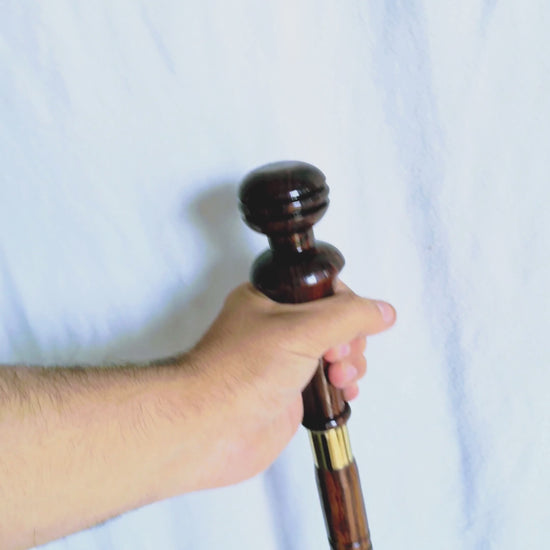 Each piece is carved from premium solid Oak wood, polished to a rich natural shine that enhances the grain’s beauty. The classic round knob handle sits perfectly in the palm, offering comfort and refined sophistication. A golden brass collar completes the look—making this cane a standout accessory for both everyday use and formal occasions.